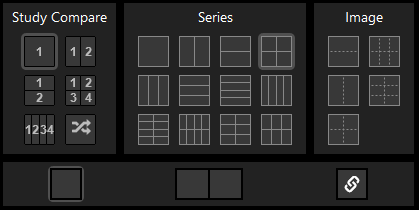 Structured Layouts define Study Views to prevent series from different studies being mixed together. For example, the Structured Layout icon showing two monitors with two studies ( e.g. |1| |2| ) will keep all the series from study 1 on monitor 1 and all the series from study 2 on monitor 2.
