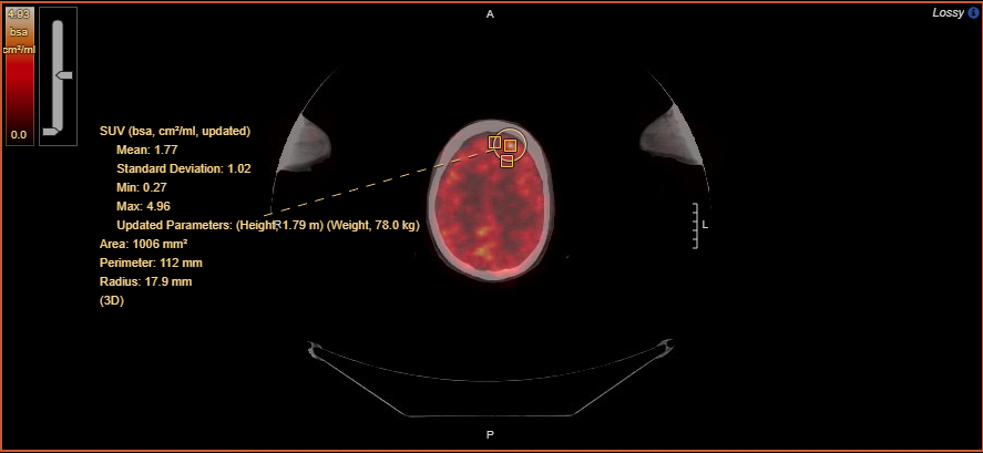 Figure 1 : Updated height and weight parameters in SUV measurement overlay