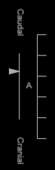 Tomosynthesis indicator Shown in the viewport for breast tomosynthesis studies to show the location of the current slice in relation to the other images in the series. The indicator shows directional markers to indicate whether you are scrolling in a caudal / cranial, or a medial / lateral direction.